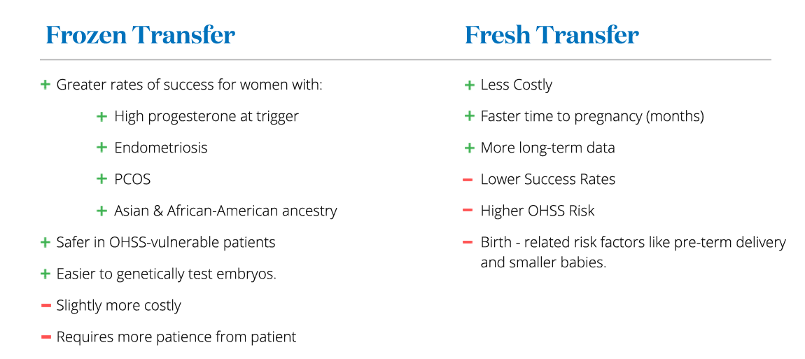 All the embryos could be frozen immediately, including the best embryos, to be thawed for a transfer at the next cycle or a later date.